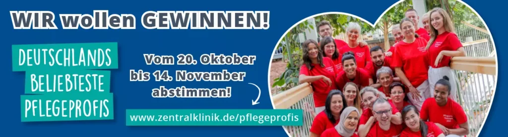 Unser langjähriger Sponsor hat eine Bitte an uns. Stimmt doch nachfolgend für das Pflegeteam der Zentralklinik in der Umfrage ab.